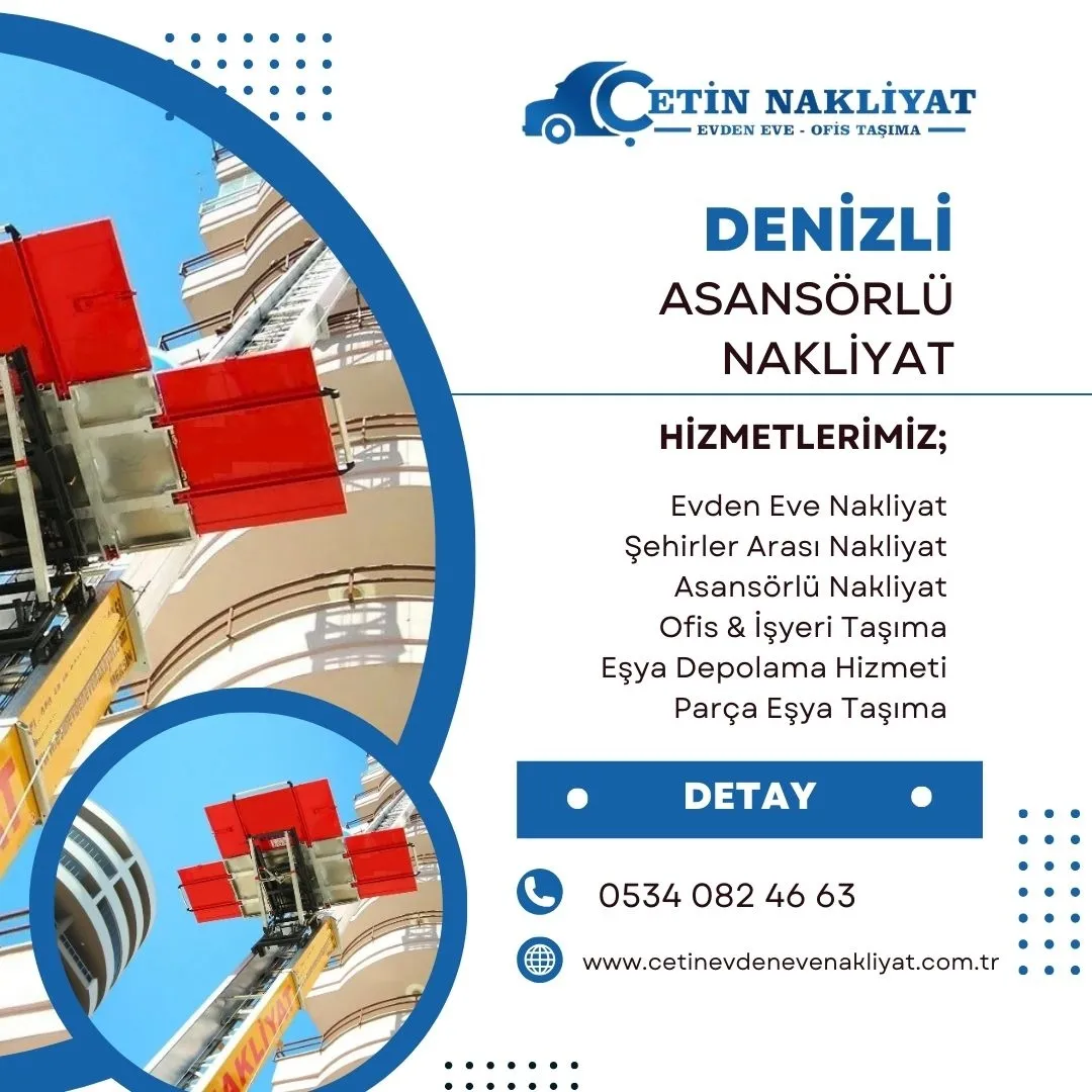 Devamını OkuDenizli asansörlü nakliyat firmamız asansörlü nakliyat uygulamalarını her zaman başarılı bir şekilde tamamlamayı başarmıştır. Denizli Asansörlü nakliyat uygulamaları, üst katlarda yer alan dairelerde ev eşyalarını taşıma sırasında kullanılmaktadır.